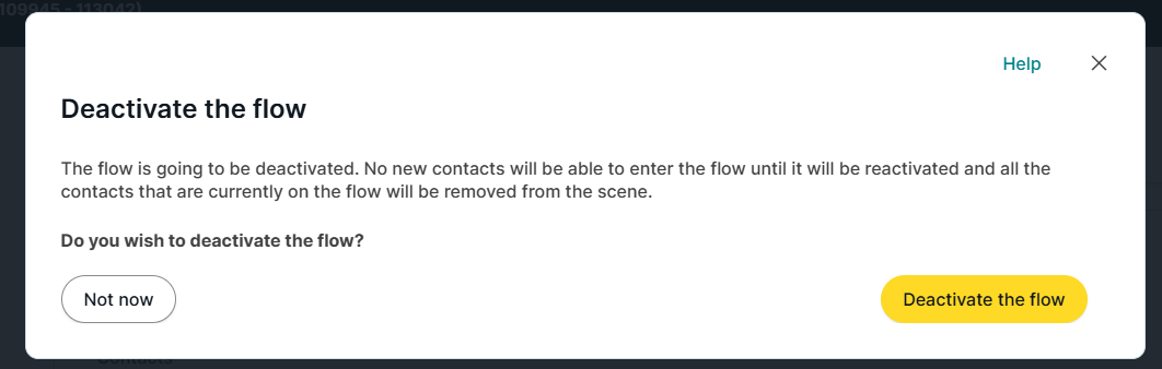 A confirmation window will appear. Here, you need to click "Deactivate the flow" to proceed, understanding that this means no new contacts will be able to enter the flow until you reactivate it, and all contacts currently in the flow will be removed from it.