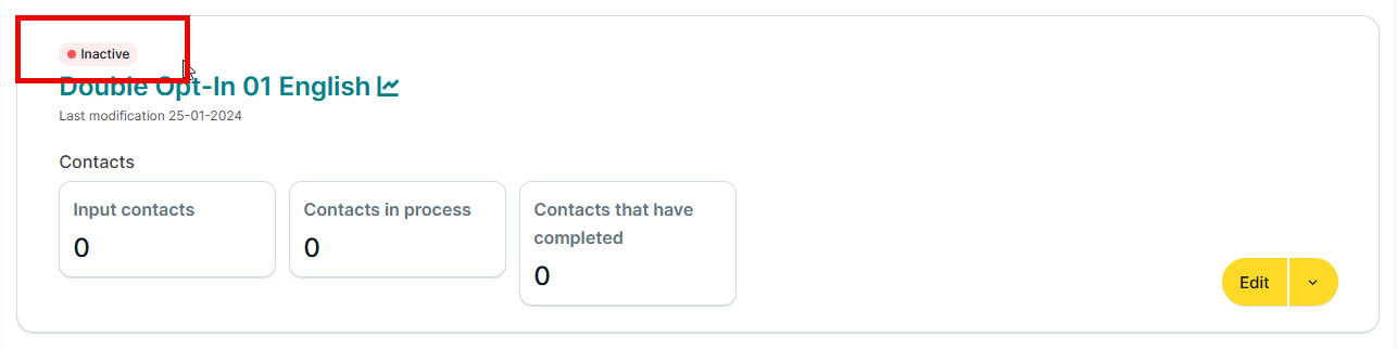 You will notice that the status of the card has changed—where there was previously a green "Active" label above the title, there is now a red "Inactive" label.