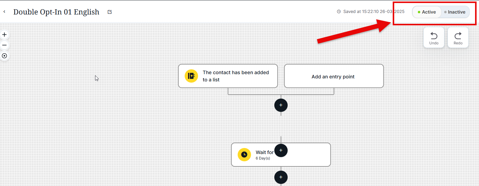 If you are already on the flow editing page, you will see a toggle switch with the two flow states: "Active" and "Inactive." To deactivate the flow, simply click this switch.