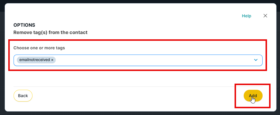Next, select the tag(s) you want to remove and click the yellow 'Add' button.