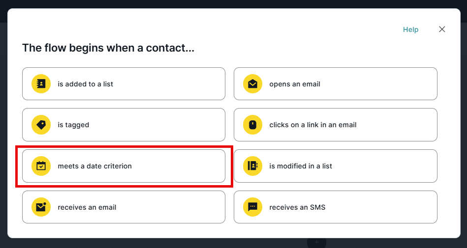 The entry point to a Marketing Automation flow called 'a contact meets a date criterion' is commonly used in cases where you want to send a communication such as a birthday greeting, a subscription anniversary message, or an appointment reminder.