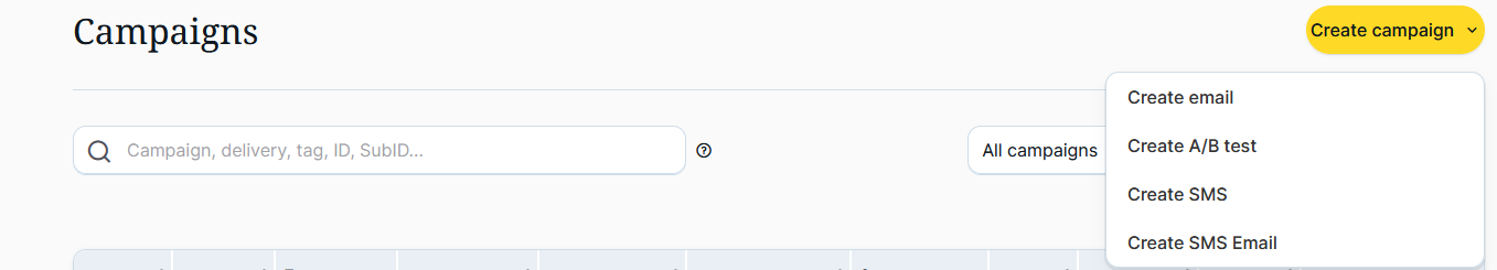 1. Click on ‘Create campaign’ > ‘Create Email’