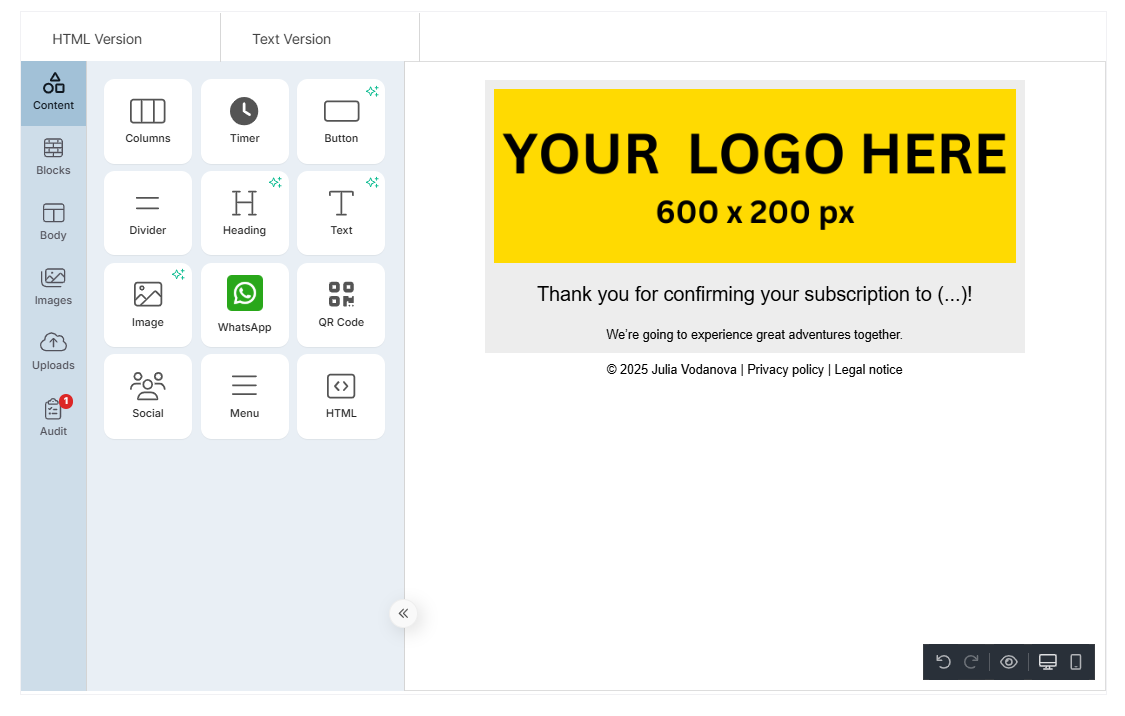 This page consists only of a thank-you message and can be created on the client’s website or by using MDirector’s Landing Optimizer service.