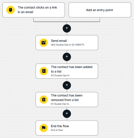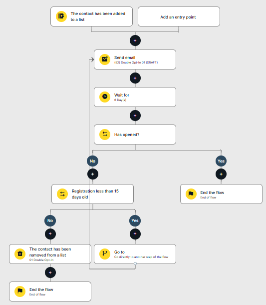 Depending on their behavior, the contact will either proceed to the second flow or receive the confirmation email again if they haven’t opened it within X days.