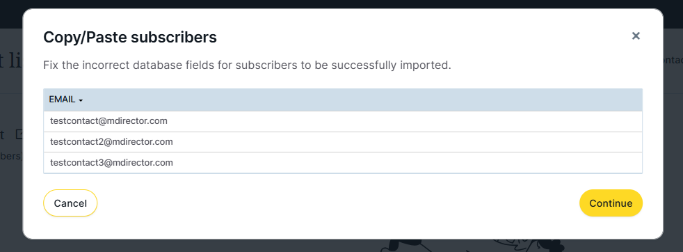 In MDirector, we offer a feature to add new contacts to the platform by simply copying and pasting email addresses or mobile phone numbers.
