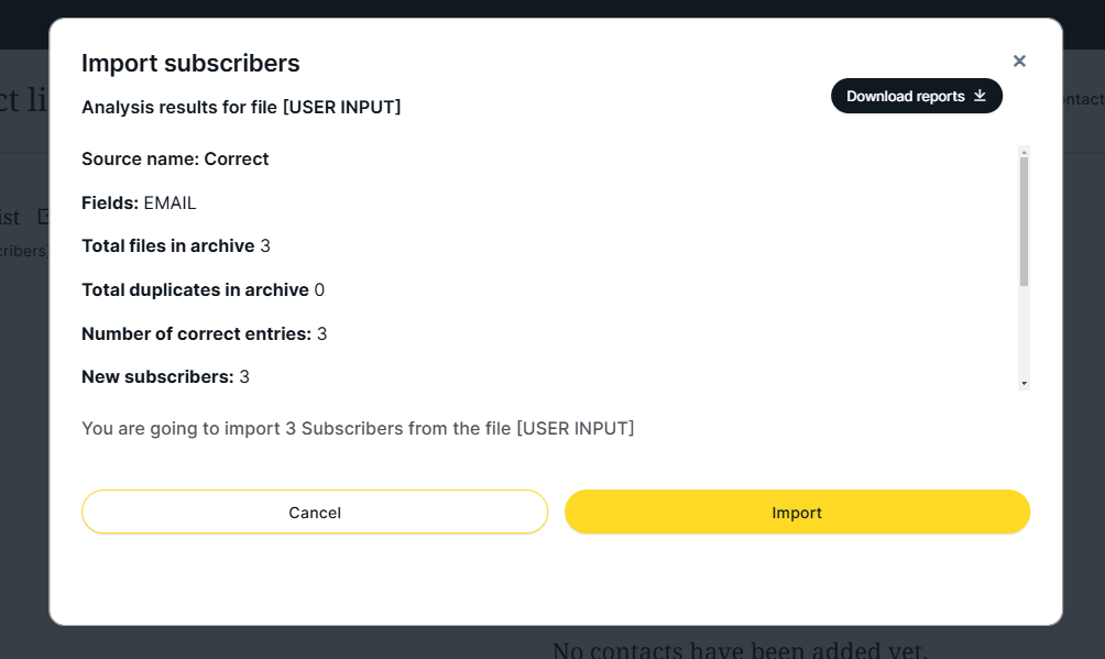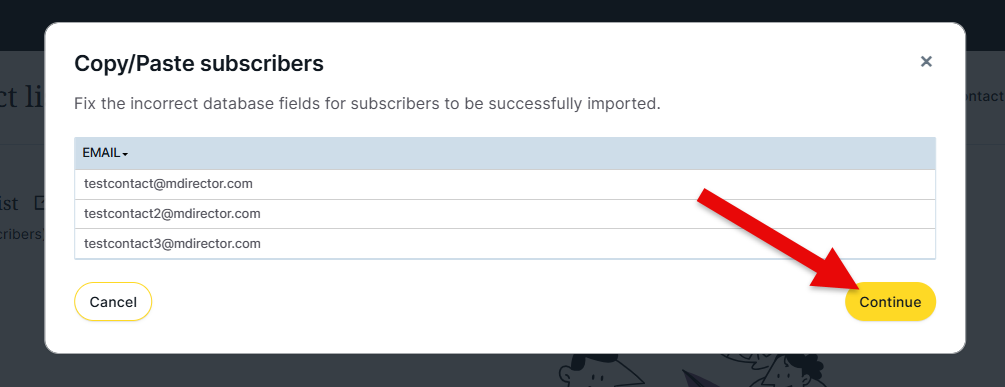 5. MDirector will provide you with a final result of the analysis it has conducted on the contacts you are about to add to the list