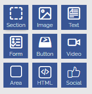 Elements are key components when customizing your page: You can add sections, images, texts, forms, buttons, videos, areas or boxes and also your own HTML code.