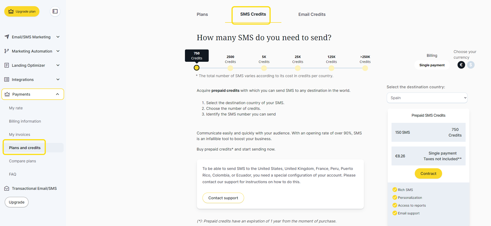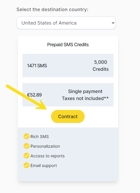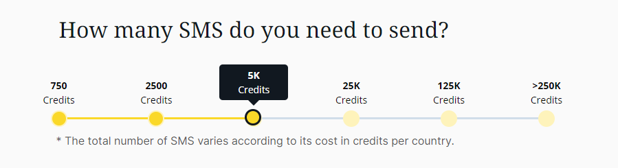 Choose the number of credits you need to send your SMS. Remember that each country will spend a different number of credits.