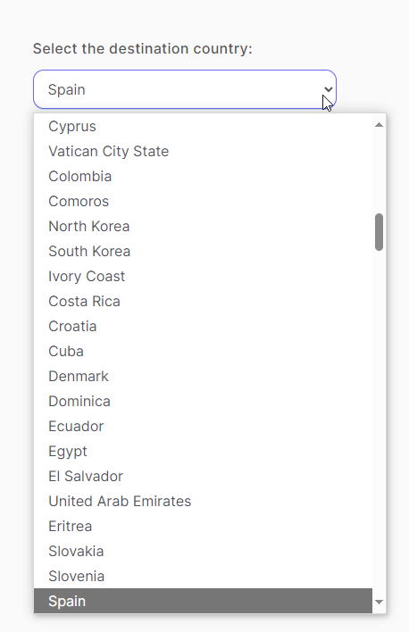 3. Select the destination country for your SMS.
