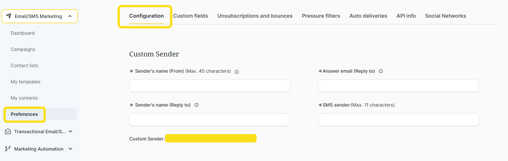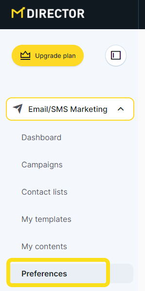 1. In the left side menu, in the Email/SMS marketing section, click on Preferences: