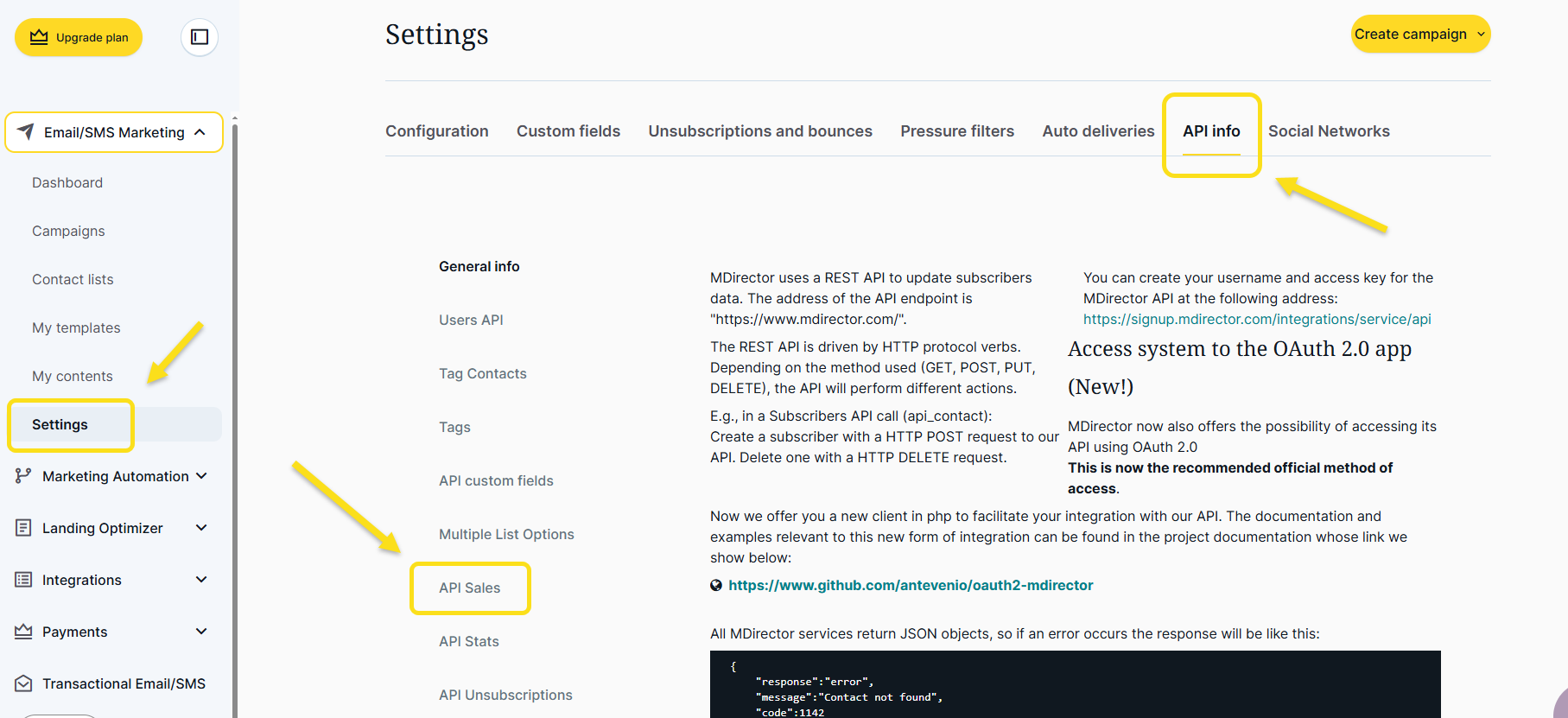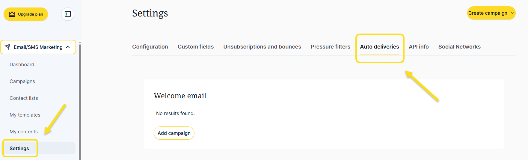 1. In the left side menu Email/SMS Marketing, in the Settings section, go to the Auto Deliveries tab.