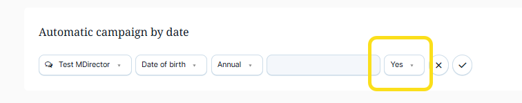 E - Repeat sending, for example: we create an automatic sending by date of birth and with yearly interval, if we choose Repeat -> “YES” in the drop-down menu, an 'email or SMS will be sent every year with respect to the contact's birthday date.