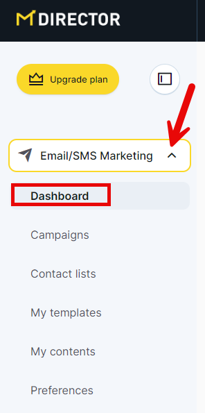 To access the control panel, you have to enter the email marketing or sms section on your home page.