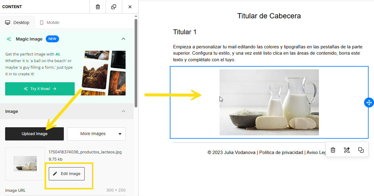 - All the images you upload are automatically stored in your MDirector account. The available storage depends on your subscription plan: