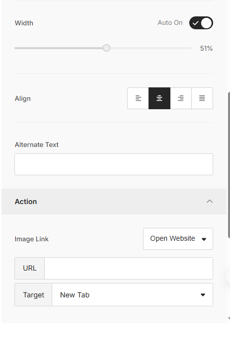 - Once uploaded, you can configure options like alt text, destination link, and alignment.
