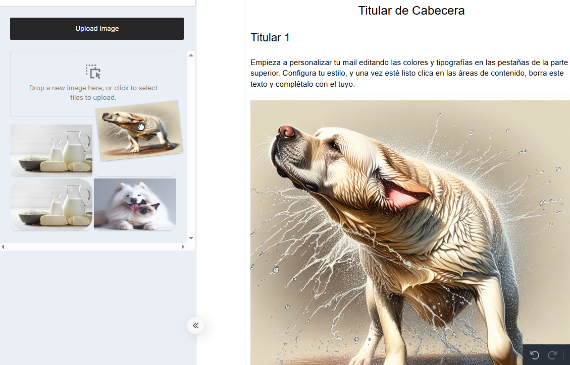 You can also drag and drop an image into the upload area below the button. - Once uploaded, drag the image from your Media Library to any image block in your template.
