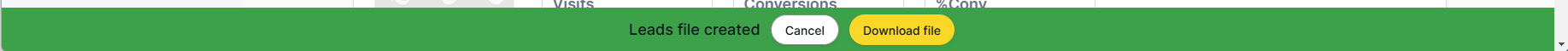 Click on the "Download Leads" button and remember: When you click the "Download Leads" button and the file starts generating, you can continue working and navigating Landing Optimizer, except in the editor. Once the process is finished, you can download the complete file with the download button that appears in the bottom bar of the window.