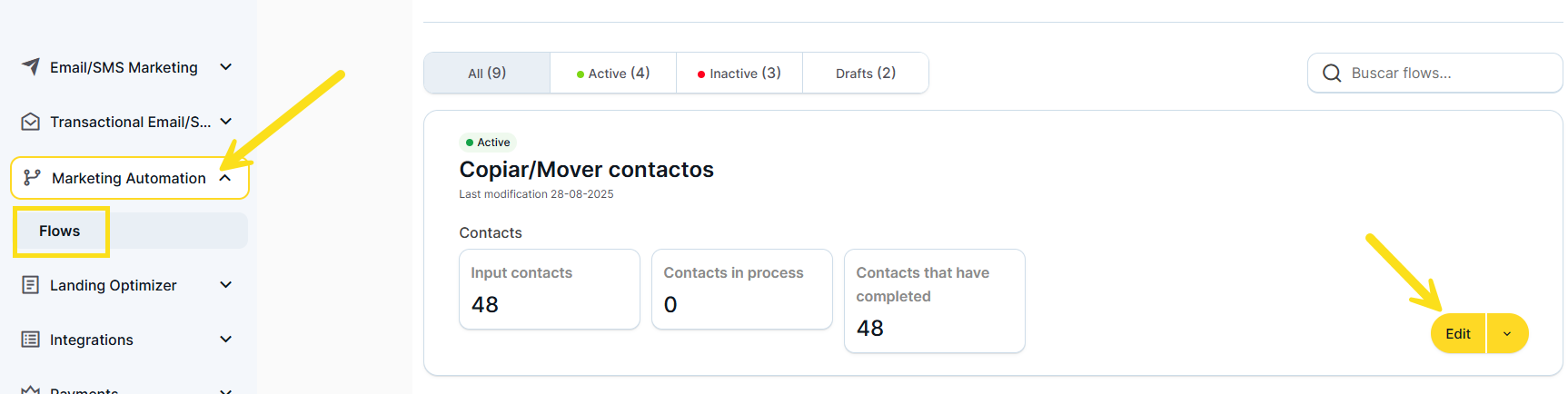If you want to change a campaign that is already part of a flow, follow these steps: