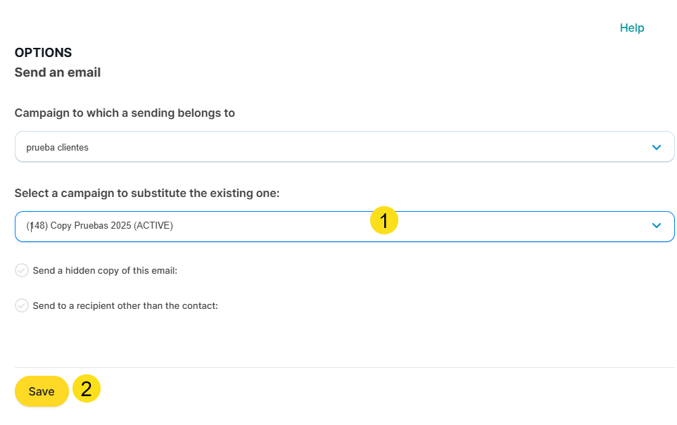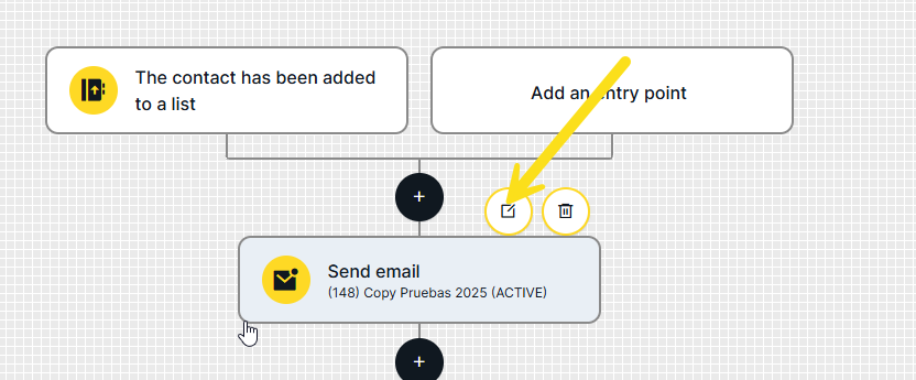 Email or SMS campaigns that are part of the step “Send an email to the contact or to another contact” in a Marketing Automation scenario change from Draft status to Active. Once in Active status, they cannot be modified.