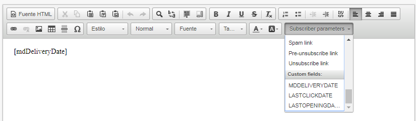 All these placeholders can be added from the same MDirector editor in a very simple way using the tool "Subscriber Parameters" where we will get a list of available placeholders.