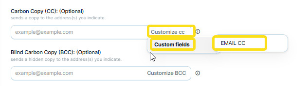 Personalised field email CC: Contacto Z