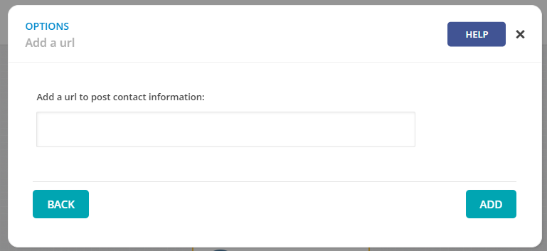 3. The following window will open. This window must contain the url to be attacked to send the contact's information. A post with the contact data will then be sent to the selected url.