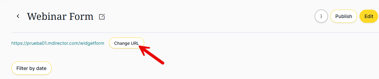 10. Embedding your landing page requires a custom subdomain, not a standard MDirector domain. Learn how to configure a custom domain here: https://mdtr.io/l6iGi. After configuration, add your custom subdomain URL at the main landing page dashboard (see below).