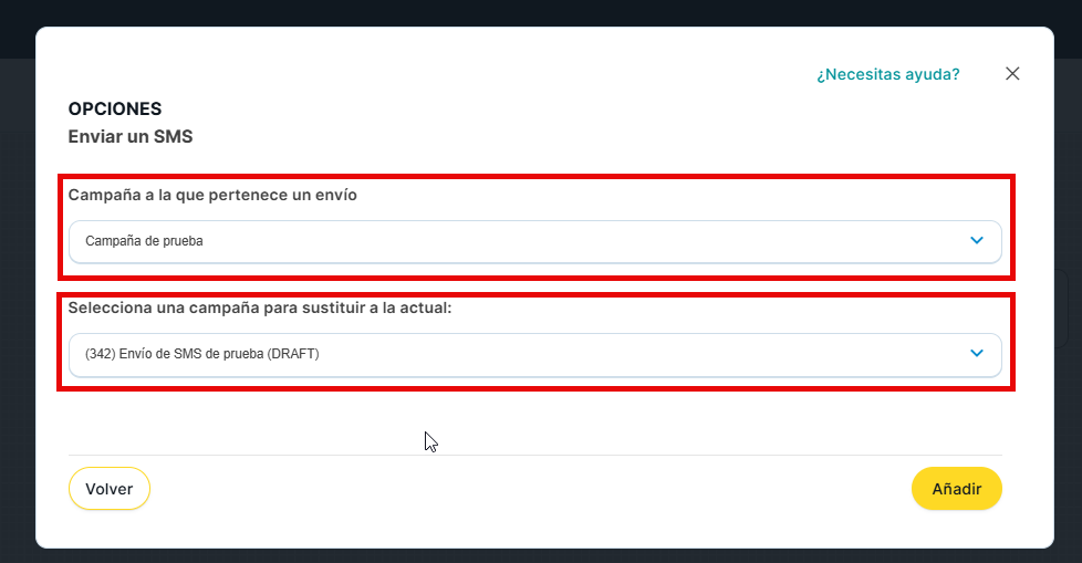 A continuación, se abrirá una ventana en la que deberás seleccionar la campaña y el envío correspondiente.