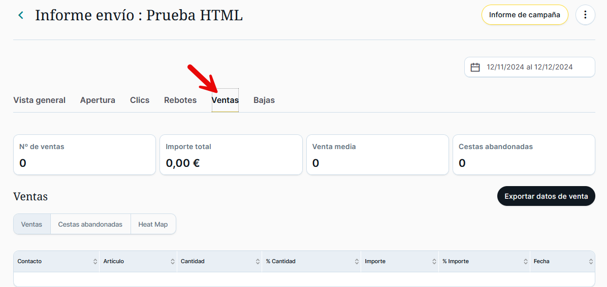 En el informe del envío podremos ver bajo la pestaña "Ventas" toda la actividad que nuestros enlaces vayan produciendo: