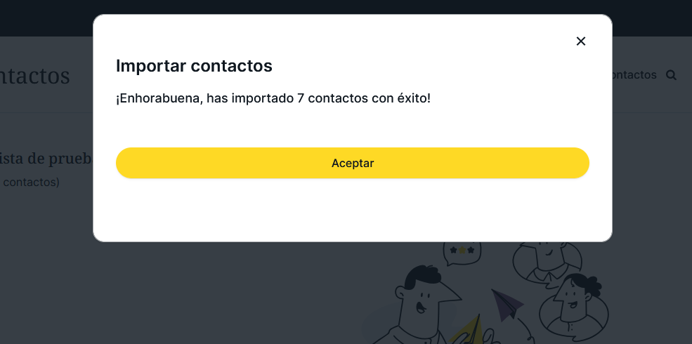 6. Si ya estamos conformes con los resultados obtenidos en el análisis del fichero, pulsar en el botón amarillo de "Importar" e ir a la lista a comprobar que los contactos se hayan importado correctamente