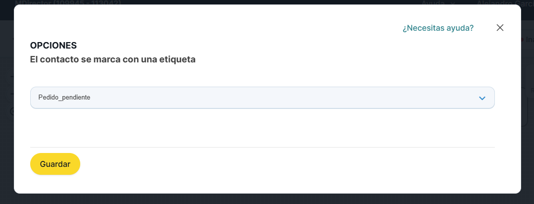 Paso 1. Agregar un punto de entrada cuya condición sea "un contacto se marca con una etiqueta". Aquí seleccionaremos la primera de las etiquetas que creamos anteriormente, la que indica que el pedido está pendiente.