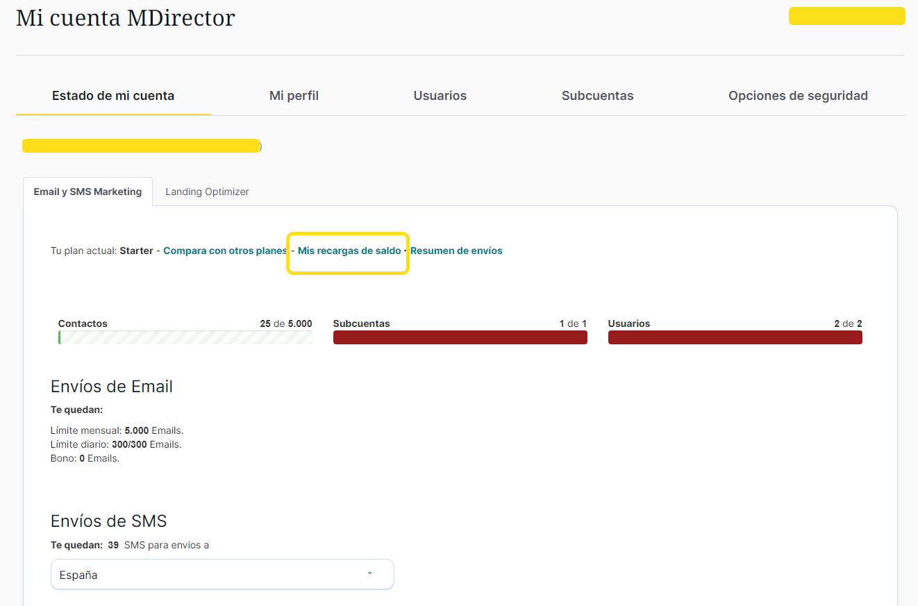 2. Haz clic en Mis recargas de saldo en la pestaña "Estado de mi cuenta".