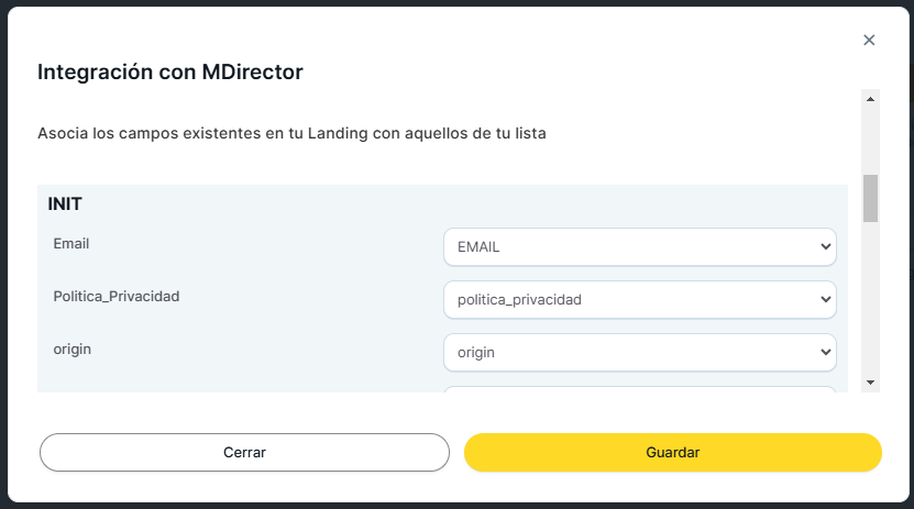 Haciendo scroll en esta misma pantalla, antes de hacer clic en "Guardar" nos encontramos con la asociación de campos: