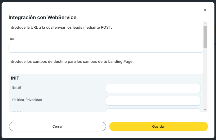 Por defecto, se enviarán con estos servicios todos los campos del formulario así como una serie de campos (llamados del sistema) que Landing Optimizer siempre guarda de todos los registros: