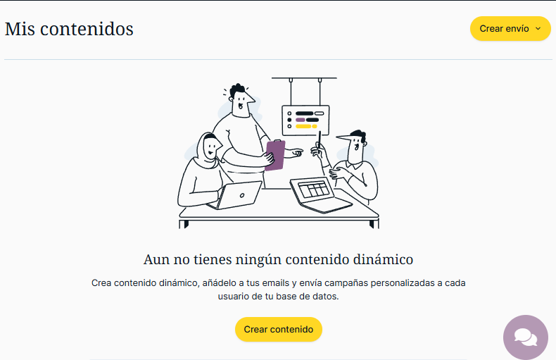 2. Entrarás en el apartado Mis contenidos donde podrás crear tus contenidos y hacerlos dinámicos.