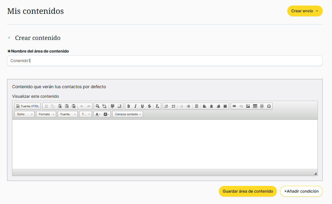 Contenido: Este es el contenido que se mostrará a un contacto que cumple con el requisito de atributos que has definido.