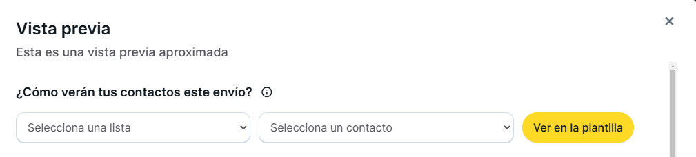 Se abrirá una ventana con el módulo: ¿Cómo verán tus contactos este envío?. Selecciona una lista y luego un contacto.