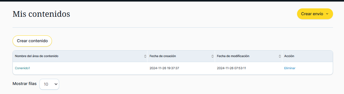 3) Se abrirá el área con el contenido por defecto y las condiciones creadas.