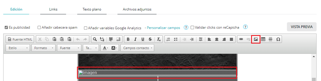 1. Haz click sobre la imagen que no se visualiza, seleccionas el icono de imagen: