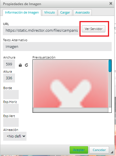 Para cargar manualmente una imagen rota en el servidor, sigue los pasos que se muestran a continuación:
