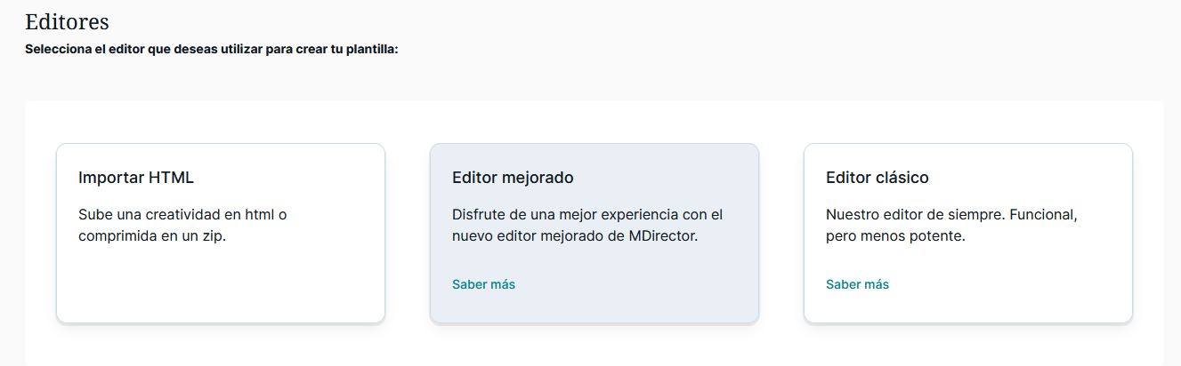 Una vez escojas el tipo de Plantilla en la que quieras trabajar se abrirá el Editor MDirector (ya sea el Editor Drag & Drop o bien el Editor HTML).