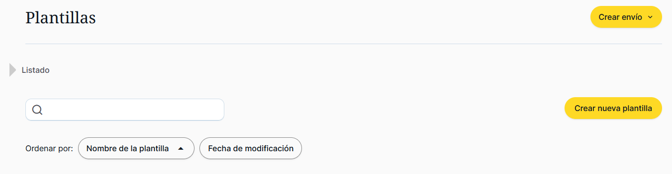 Al crear, diseñar y guardar una plantilla en este apartado podrás acceder a ellas y utilizarlas/reutilizarlas en tus próximos envíos.
