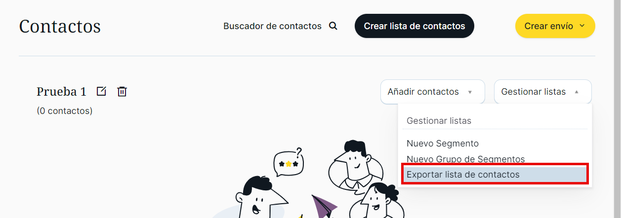 - También puedes exportar la lista y descargar un archivo CSV con los datos que indiques: