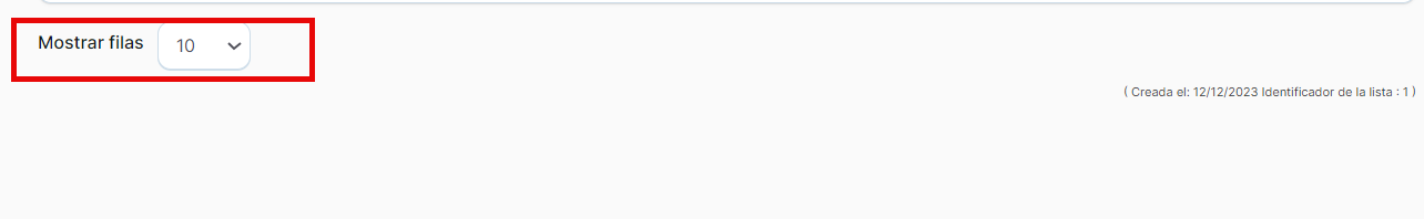 Una vez se crea la lista se le añadirá un ID de lista, que encontrarás en la parte inferior derecha, así mismo la fecha de creación de la misma: