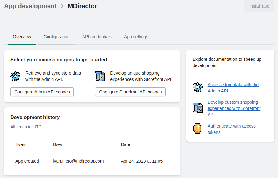 8 - En la siguiente pantalla pulsa el botón "Configure Admin API scopes":