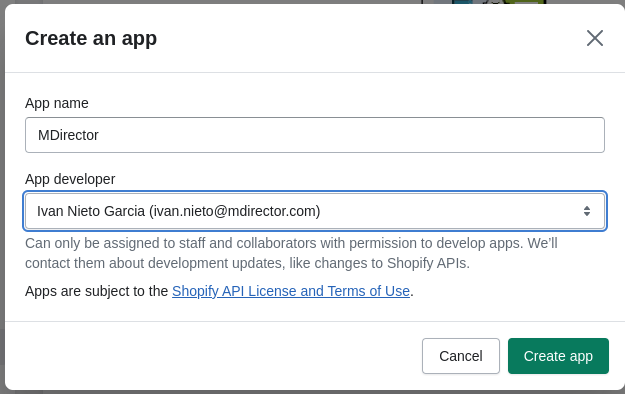 7 - Recomendamos asignar el nombre de "MDirector" a la aplicación y pulsar el botón "Create app":