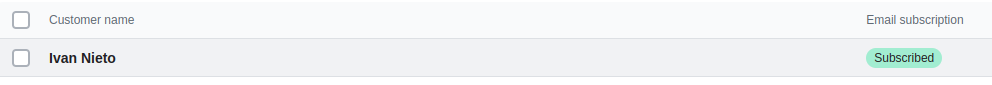 - Los contactos que se sincronizan con MDirector son los contactos que tienen marcada la opción de "Email subscription" en Shopify (aparecen como "Subscribed"):