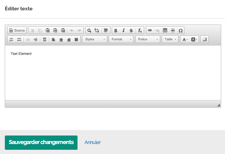 Propriétés de l'élément texte.