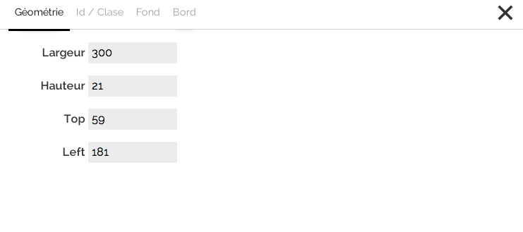 pour éditer ses propriétés: dimensions (géométrie), Id/Classe, fond, bord et contenu.