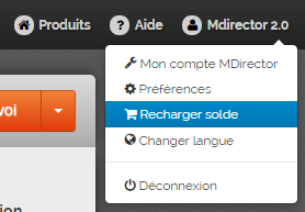 1. À partir du menu utilisateur de l'en-tête, cliquez sur Recharger solde.